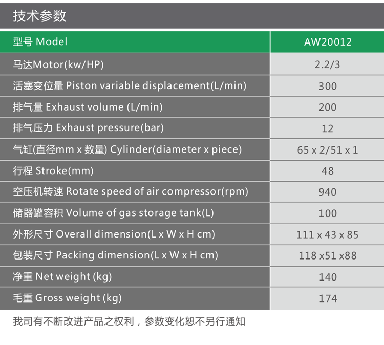 產品名稱:2.2kW 12bar 節能環?;钊娇諌簷C AW20012