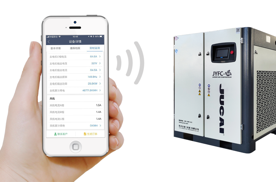 通過物聯網技術對空壓機設備進行全生命周期管理,遠程檢測,遠程管理,手機預警,數據采集等。