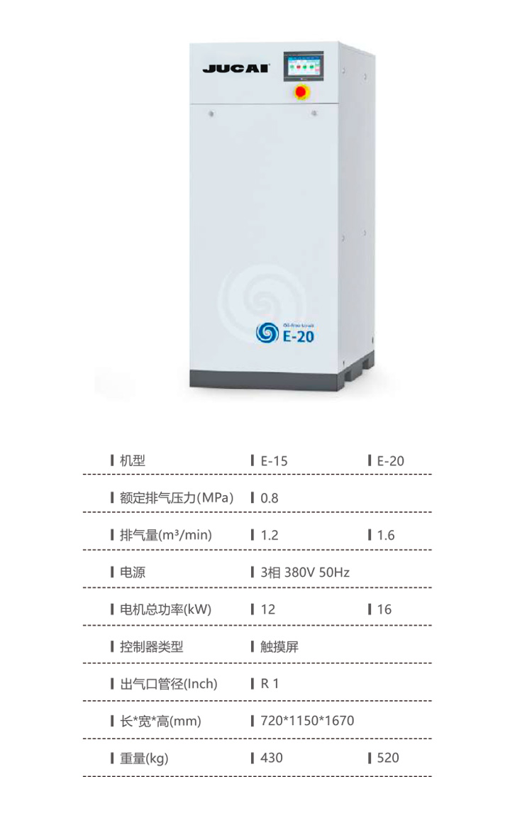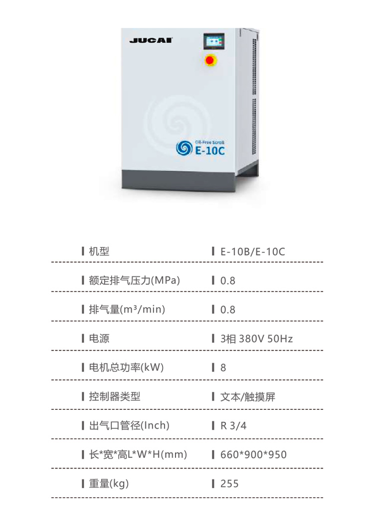 產品名稱:8kW 0.8M3/min 無油渦旋空壓機E-10C 靜音食品飲料醫療實驗室空壓機
